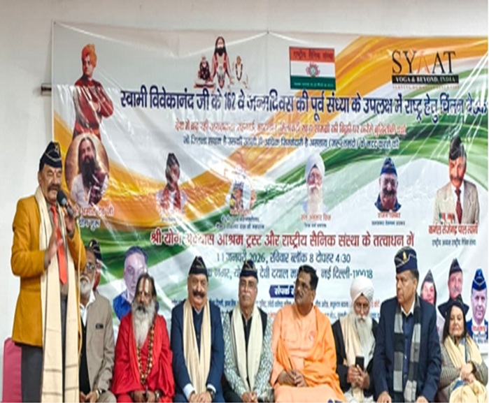 January 11, 2026, Yogeshwar Devi Mahamandir Temple, Tilak Nagar, New Delhi - A program was organized here today on the eve of Swami Vivekananda's birth anniversary by the NCR unit of the National Soldiers' Organization and the Shri Yoga Abhyas Ashram Trust.
